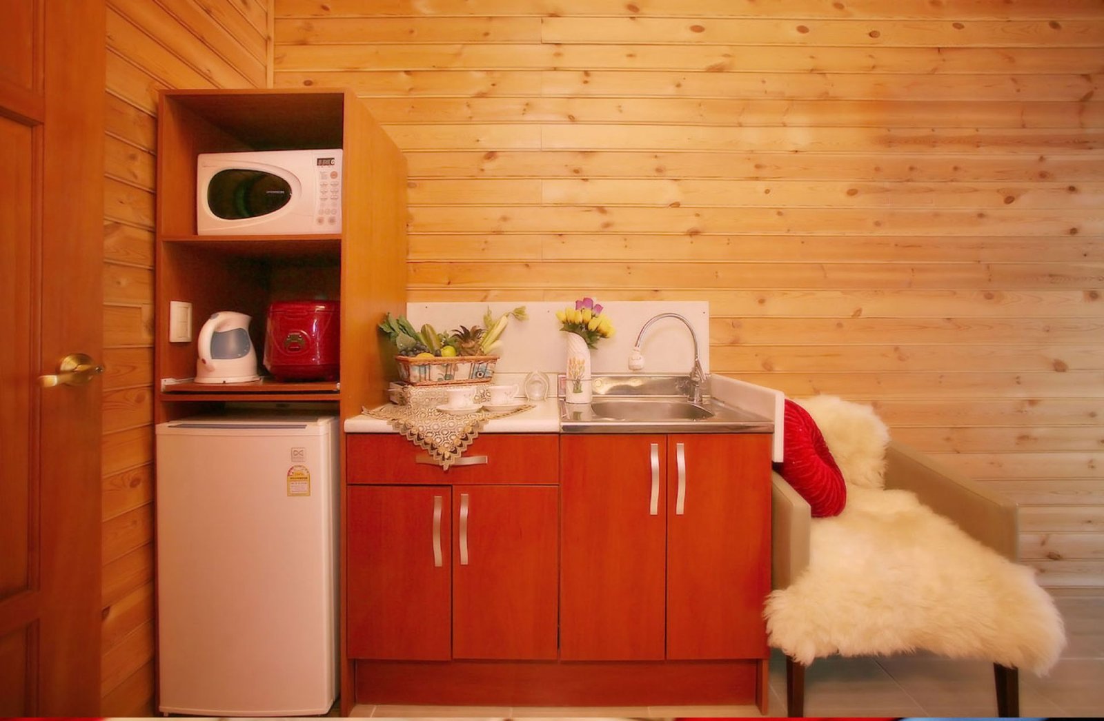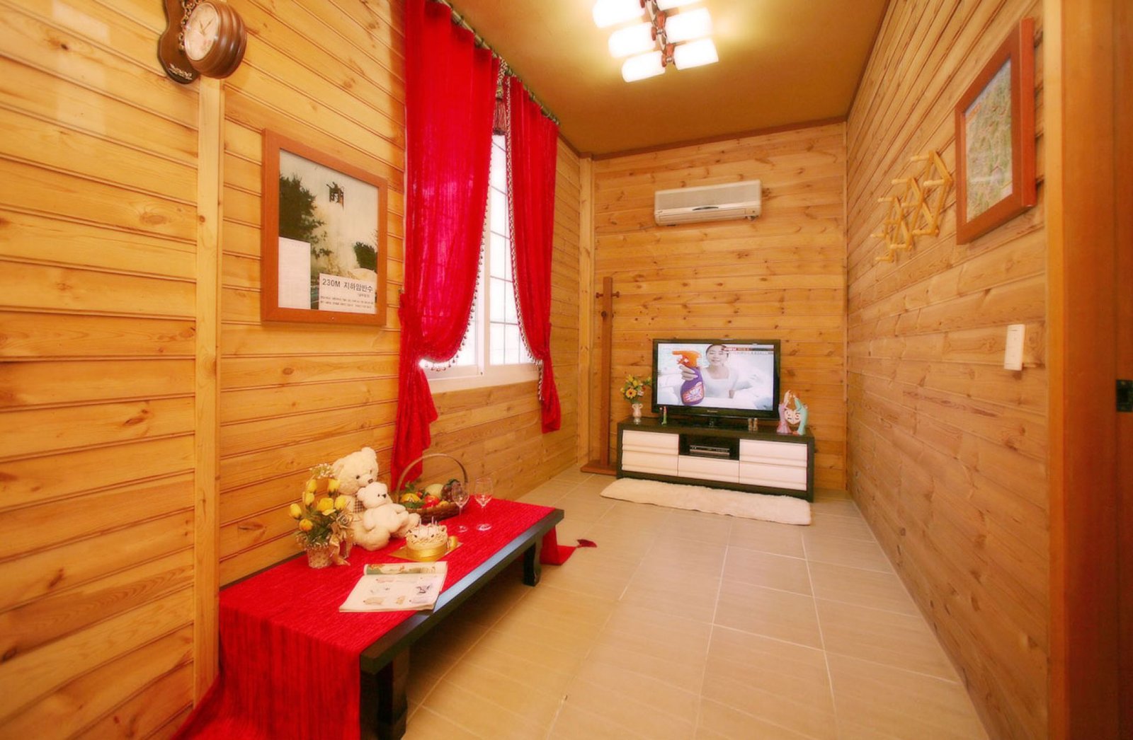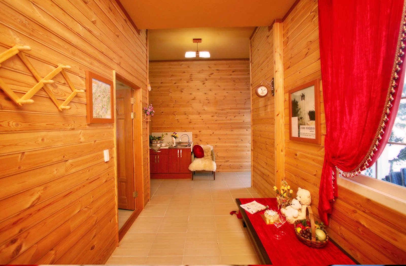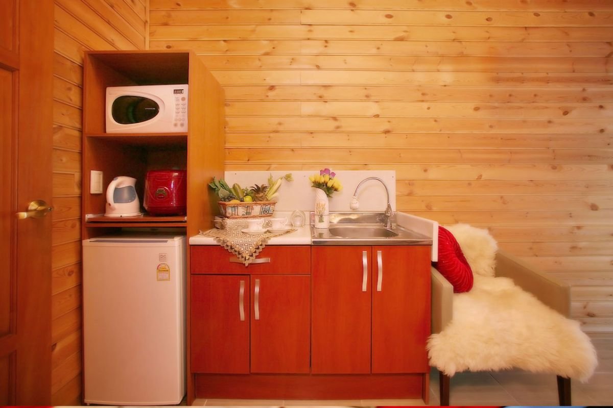 • 시설 : 42인치LCD평면TV, 침대, 냉장고(대형,소형). 장농, 티테이블, 취사도구, 식탁, 전자렌지, 전기밥솥, 커피포트, 화장대, 선풍기, 드라이기, 에어컨, 세면도구, 전기렌지, 쇼파, 벽난로 등